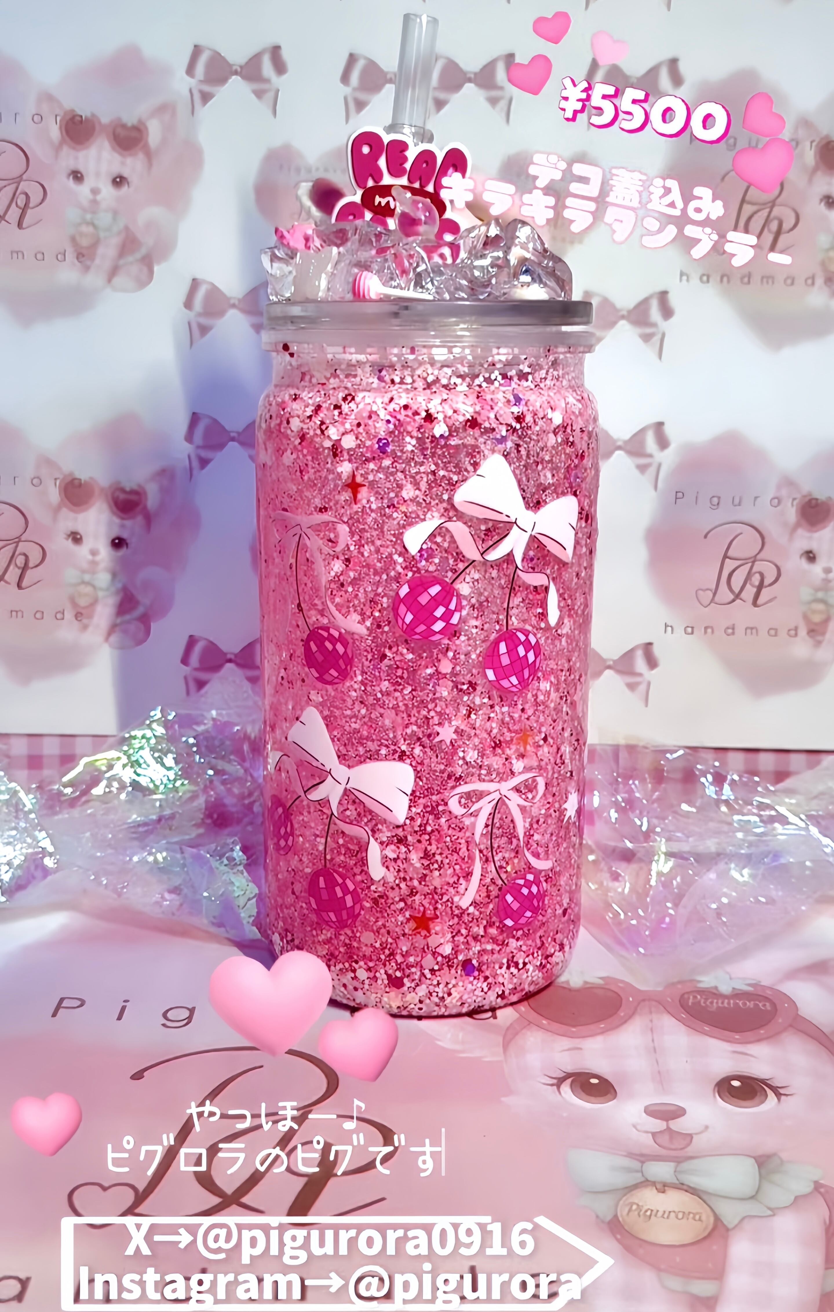 16オンスプラスチックウォーターボトル、ダブルウォールスノーグローブタンブラー、プレドリルドホール付き、ストロー付き、デコ蓋付き